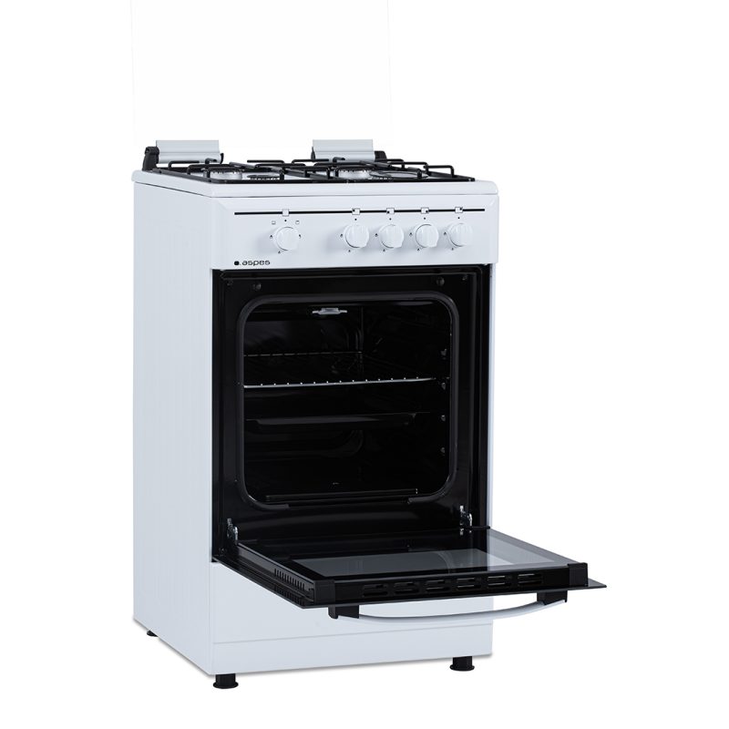 Cocina Gas Butano, tapa de cristal, horno 55 litros, 50 cm.
